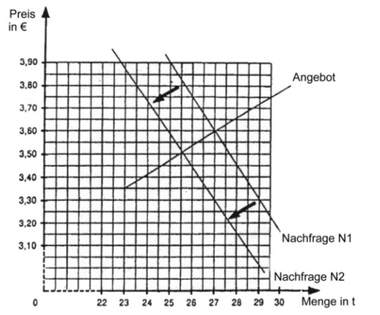 Prüfen Sie, welche Situation zu der nachstehend abgebildeten Verschiebung der Nachfragekurve von N1 zu N2 für das Gut Heizöl geführt hat!